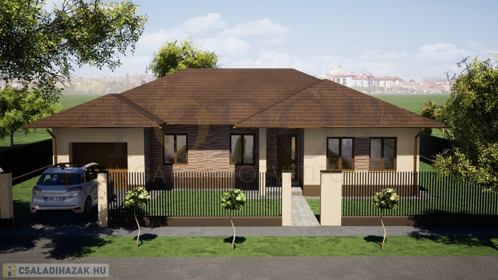 A 137 m²-es ház amerikai konyhás nappalival, négy külön nyíló hálószobával és két fürdőszobával készül, így kiválóan alkalmas nagyobb családok számára is.