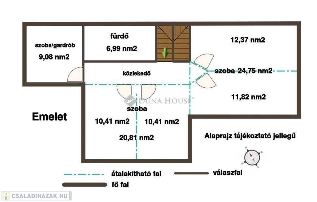 A belső tereket tekintve, a jövőbeli tulajdonosa még időben van, hogy személyre szabja az otthonát. A burkolatok, beltéri ajtók választhatók, így mindenki megtalálhatja az ízlésének és életstílusának megfelelő stílust és minőséget. Az emelt tetősík minimum magassága 170 cm, ezáltal a tágas és világos terek garantálják a kényelmet és az egyénre szabott életérzést.