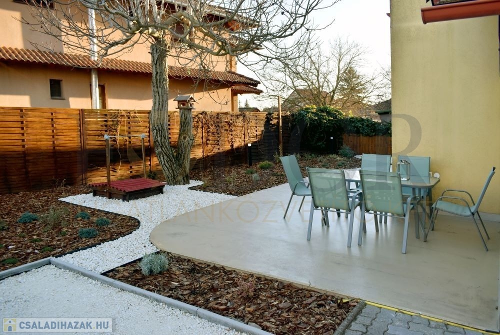 • 141 m²-es lakótér, 16 m²-es garázs elektromos kapuval, 180 m²-es gondozott, automata öntözésű díszkert, ahol válogatott növények és egy gyönyörű diófa adnak árnyat a nyári napokon.