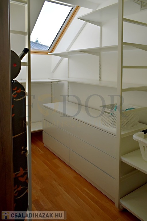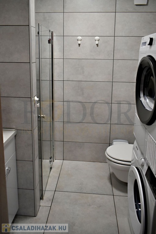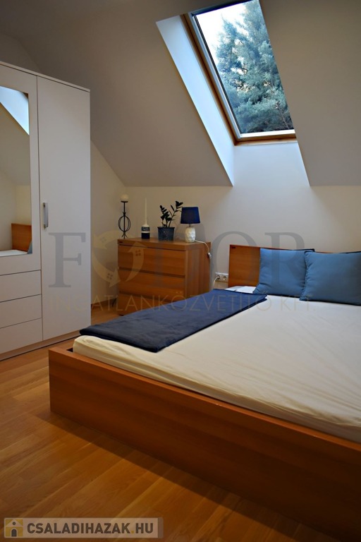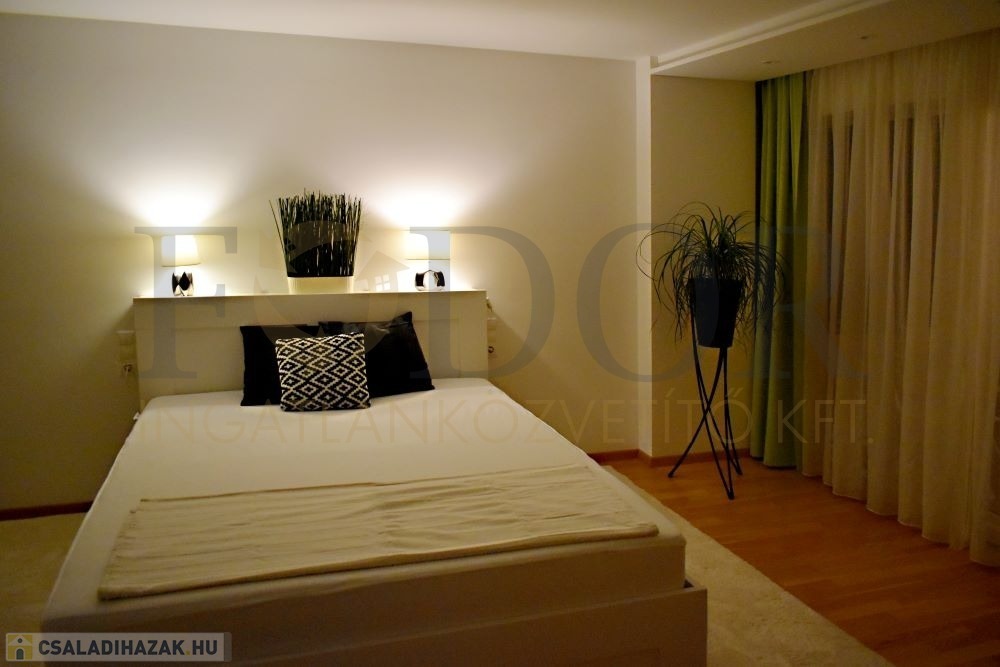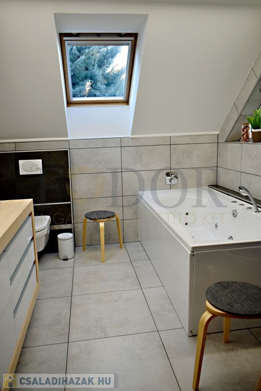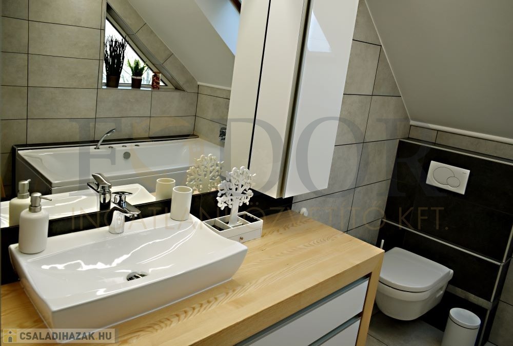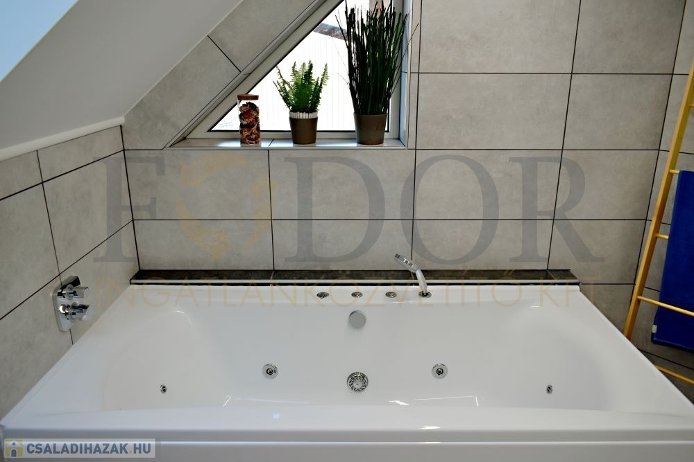 • Fürdő mindkét szinten: alul épített zuhany és bidés WC, felül hidromasszázskád víz- és levegőfúvókákkal, igazi wellness-élmény otthon.
