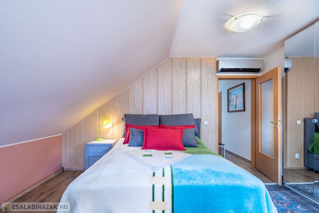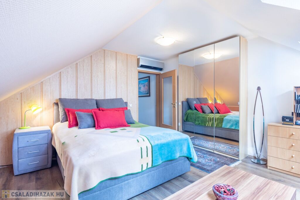Az emeleten négy hálószoba, fürdőszoba, wc, és egy külön gardróbhelyiség gondoskodik a kényelemről.