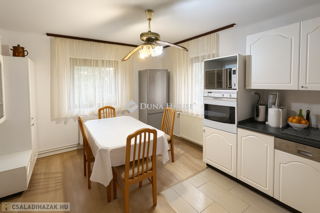 Téglaépítés, jó állapotú szerkezet,5 különnyíló szoba ideális családoknak vagy akár két generációnak is. Tágas nappali, étkező, jól felszerelt konyha, riasztó, redőnyök, szúnyogháló, kerti tároló, modern & hibrid fűtési rendszer: Ariston levegő-víz hőszivattyú energiahatékony fűtés/hűtés és melegvíz-ellátás, vegyestüzelésű kazán fa, brikett vagy szén használata, alacsony rezsiköltséggel