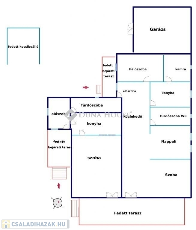 Két önálló bejárattal rendelkezik, akár összeköltözésre is alkalmas, illetve egy kisebb átalakítással egy nagyobb család kényelmét is szolgálhatja.