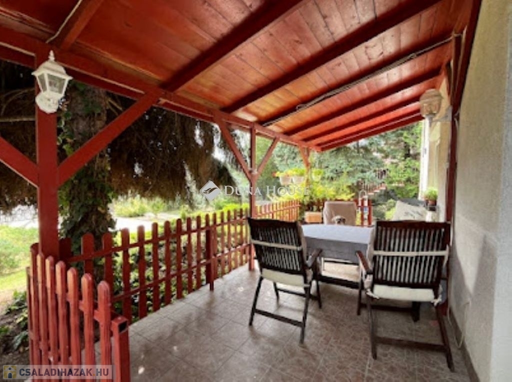 A kerti locsolás fúrt kútról lehetséges. A hátsó telekrész örökzöldekkel körülvett, privát kertet biztosít napozás, kerti sütögetés céljából.