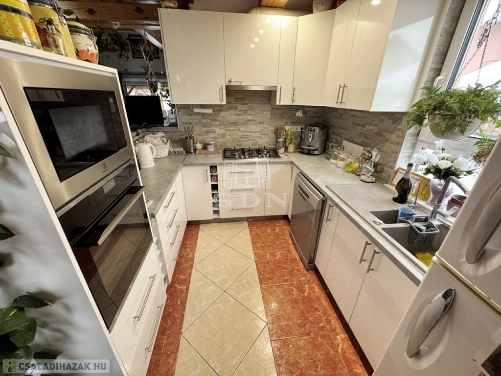 SZIGETSZENTMIKLÓS KERTVÁROSÁBAN, NYUGODT KÖRNYEZETBEN, ELADÓVÁ VÁLT, EGY NAPELEMES, PADLÓFŰTÉSES, LÉGKONDICIONÁLT