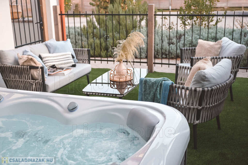 Az apartmanház udvarán található wellness részleg kettő jakuzzival, egy finn- és egy infra szaunával egybekötött só szobával várja a vendégeket.
