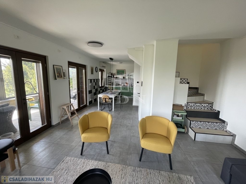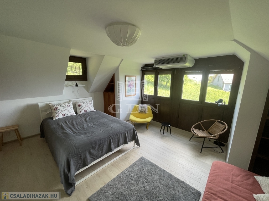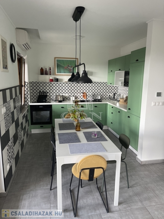 jakuzzi (feláras) riasztó, parkosított kert, automata öntöző rendszer, a házban meg cserépkályha.