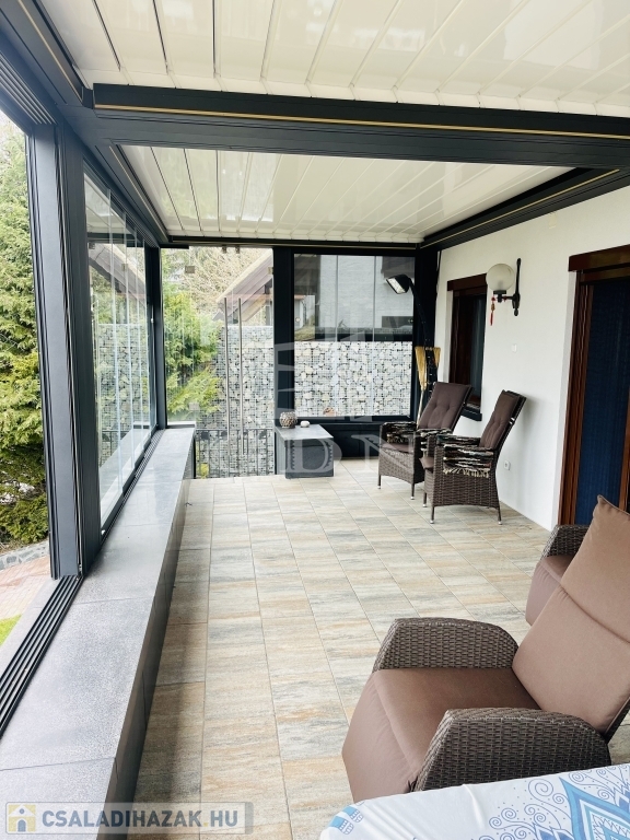 Extrák: légkondicionáló, napelem, hőszivattyú fancoil hűt fűt, gépesített konyha, motoros árnyékolók, motoros terasz tetőmozgatás