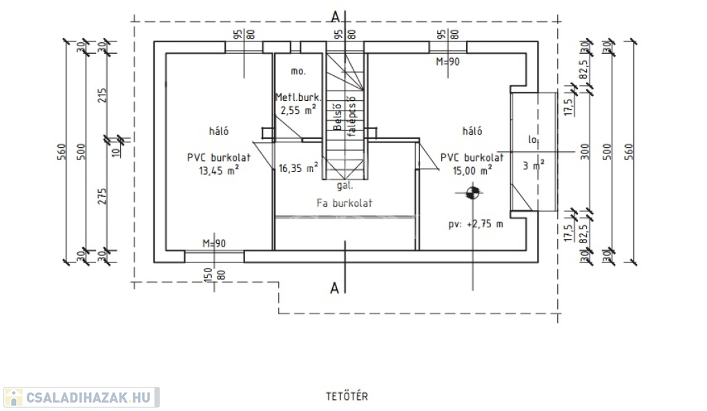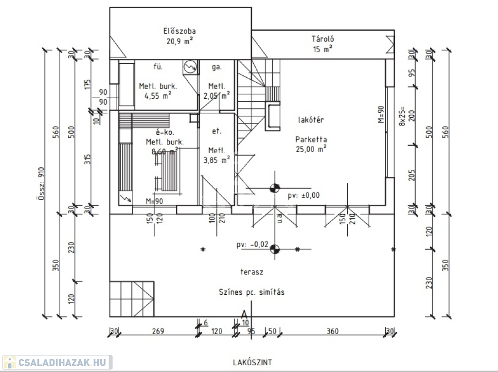 Szintek: pince szint: 23 nm, lakás szint: 45 nm+28 nm előtér, tetőtér: 38 nm.
