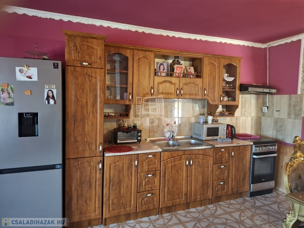 Szikszó csendes kis utcájában, a városközponttól 5 percre, amerikai konyhás, rendezett családi ház eladó.