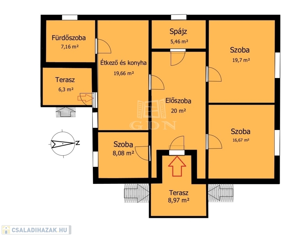 Az ingatlanban három szoba található, amerikai konyhás, nagy fürdőszobás, ideális választás lehet családok számára.