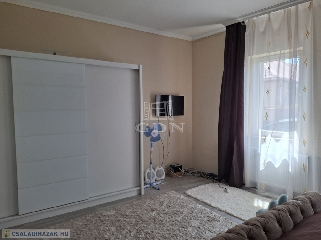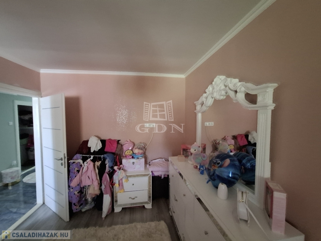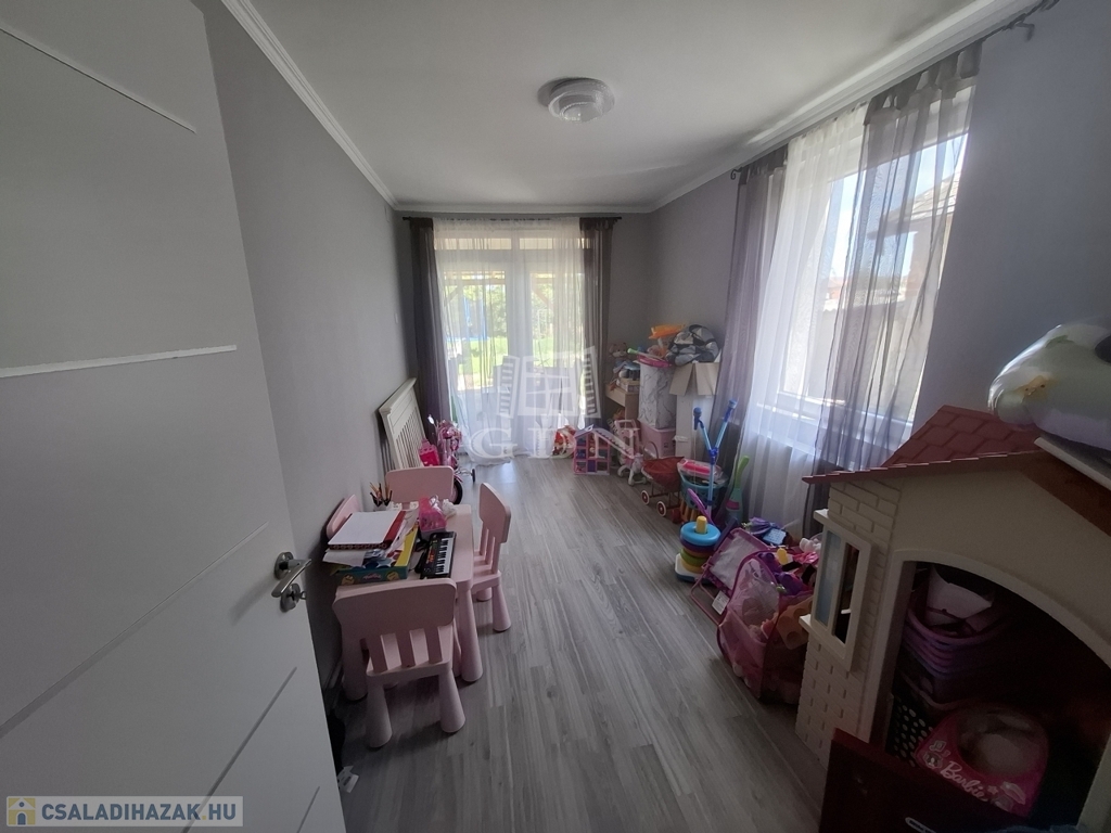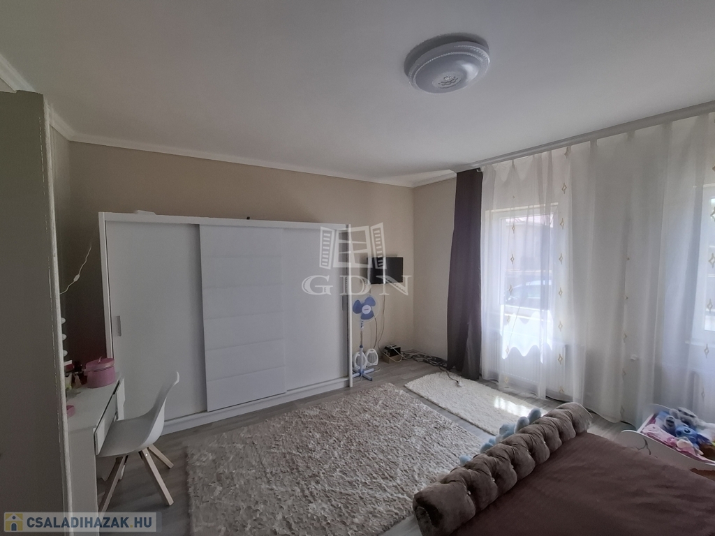 A ház 3 szobás, amerikai konyhás, nagy nappalival, nagy fürdőszobával és mosókonyhával valamint egy praktikus gardróbszobával is rendelkezik.