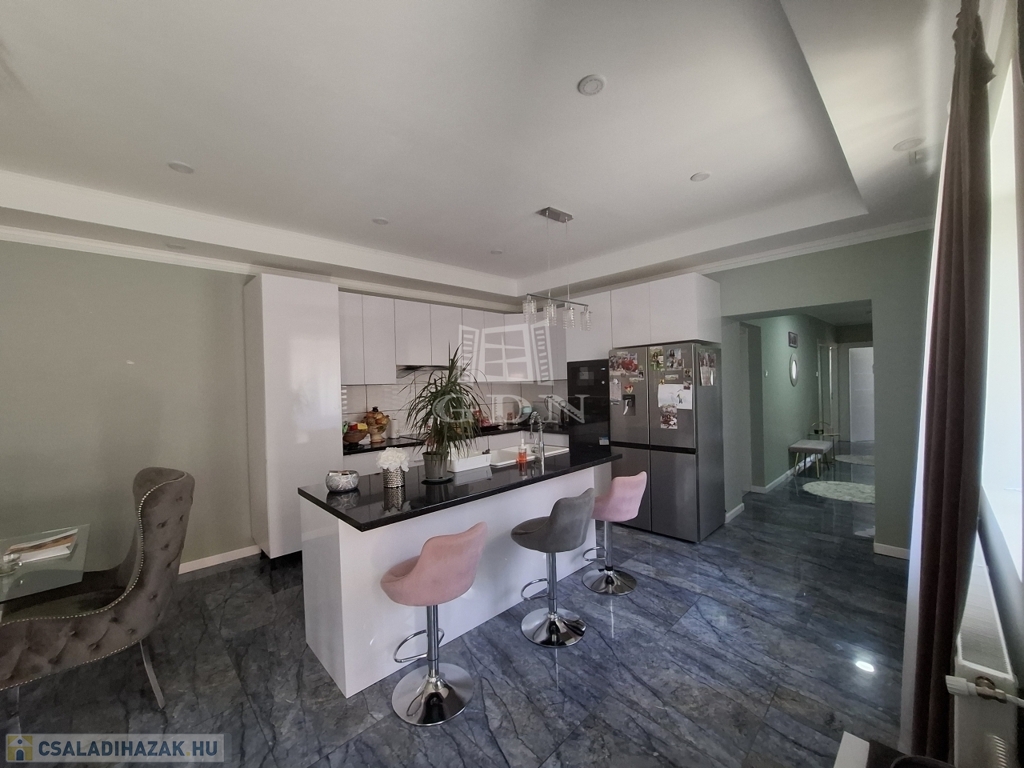 A ház 3 szobás, amerikai konyhás, nagy nappalival, nagy fürdőszobával és mosókonyhával valamint egy praktikus gardróbszobával is rendelkezik.