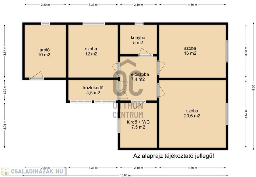 - Helyiségek: 3 hálószoba, konyha-étkező, fürdő-WC, közlekedő, kamra, veranda