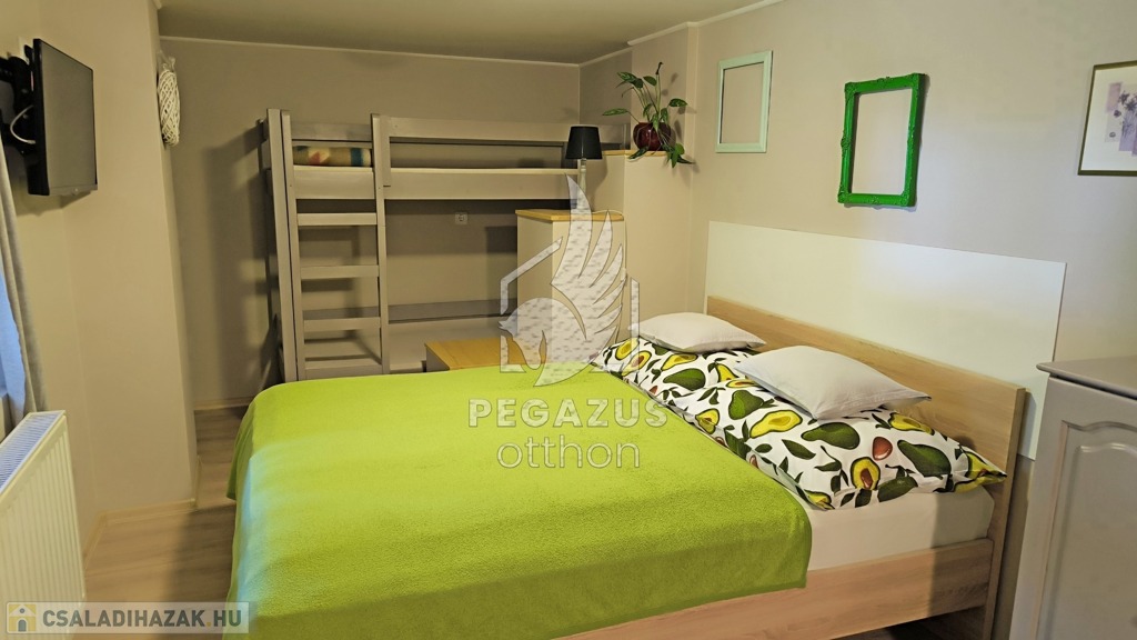 A gondosan felújított főépület (90 m²) mellett egy külön bejáratú, 30 m²-es apartman is helyet kapott, ami ideális akár két generáció zavartalan együttélésére, vagy a turizmusból származó bevétel maximalizálására. A kiváló elhelyezkedésnek köszönhetően a vendégek a főszezonban is zavartalanul pihenhetnek.