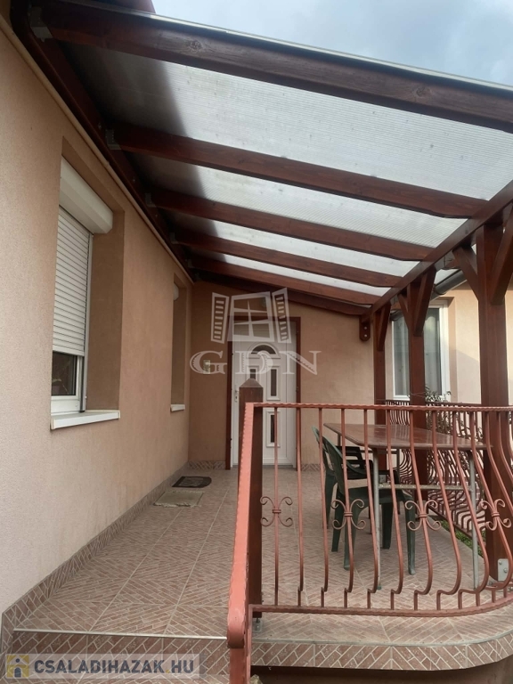 15 m²-es, gyönyörű fedett terasz, fa gerendás kivitelben