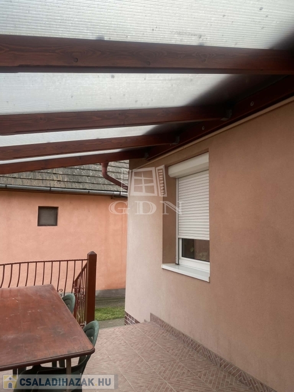 15 m²-es, gyönyörű fedett terasz, fa gerendás kivitelben