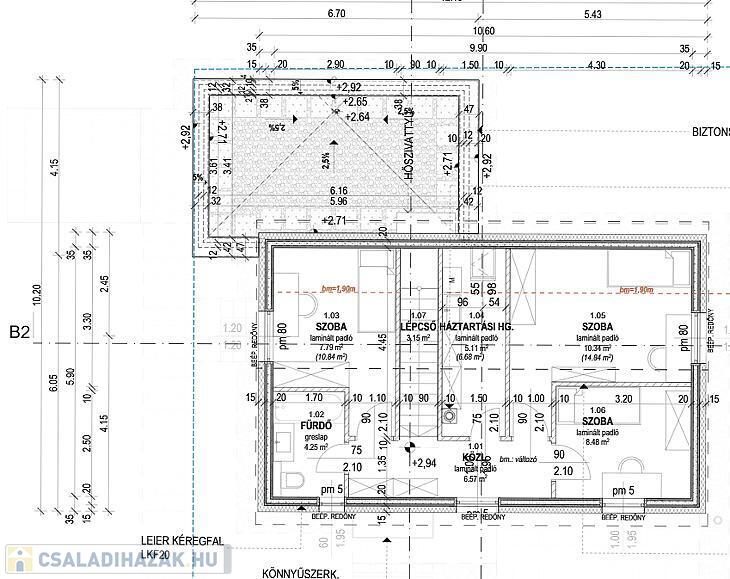 Emelet: 2 db hálószoba, félszoba, fürdőszoba és háztartási helyiség
