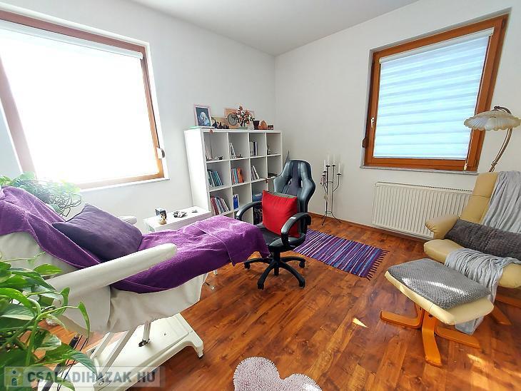 A ház energiatakarékos és modern megoldásokat kínál: 6 kW-os, bővíthető napelemrendszer, infraszauna, valamint 22 nm-es, fűtött garázs áll rendelkezésre, mely közvetlenül a lakótérből is megközelíthető.