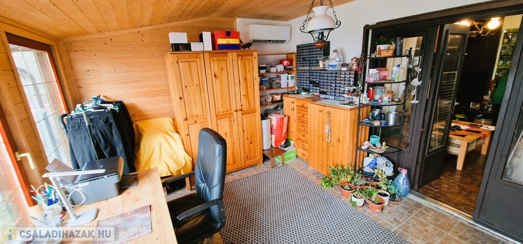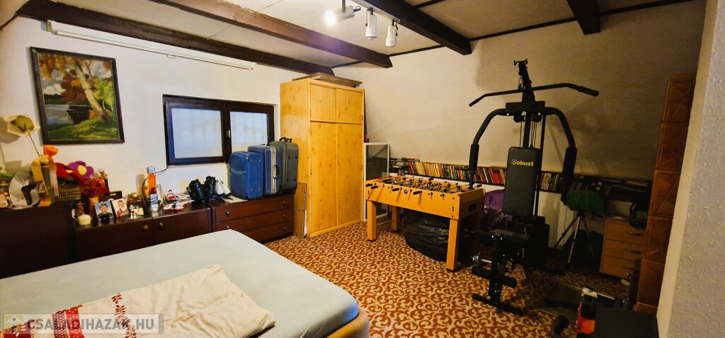 Elosztását tekintve az alsó szinten nappali, étkező, konyha és fürdőszoba, az emeleti szinten két szoba található. A legalsó szint két helységből áll, víz és villany rendelkezésre áll, itt további lakótér kialakítására van lehetőség.