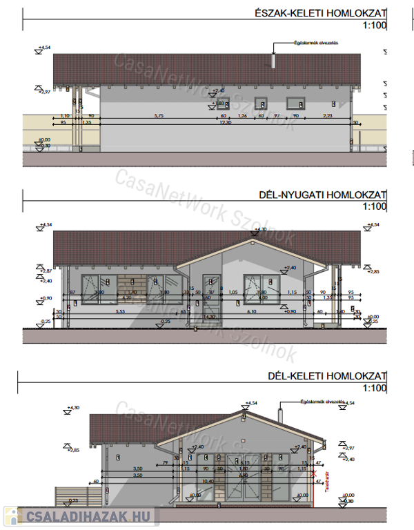 - A családi ház helyiségei: 3 hálószoba, előszoba, fürdőszoba WC-vel, külön WC helyiség, tároló, közlekedő, amerikai konyhás nappali, valamint fedett terasz a bejáratnál és a kert felé is