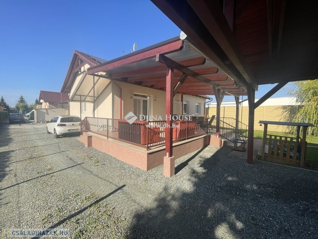 Az ingatlan egy csendes, magánútról megközelíthető belső telken bújik meg, 2017-ben épült. A ház külső klasszikus megjelenése és kimagasló műszaki tartalma, modern letisztult belsővel van ötvözve. Az épület ikerházas kialakítású, egyszintes , a szomszédtól jól elszeparált, teljesen privát életteret biztosít.. Egy fedett terasz felőli előtér vezet az amerikai konyhás nappaliba, melyhez 26 m2 fedett terasz csatlakozik a kert felé fordulva, déli tájolással.