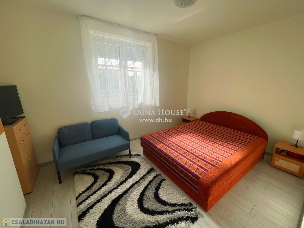 Az ingatlan egy csendes, magánútról megközelíthető belső telken bújik meg, 2017-ben épült. A ház külső klasszikus megjelenése és kimagasló műszaki tartalma, modern letisztult belsővel van ötvözve. Az épület ikerházas kialakítású, egyszintes , a szomszédtól jól elszeparált, teljesen privát életteret biztosít.. Egy fedett terasz felőli előtér vezet az amerikai konyhás nappaliba, melyhez 26 m2 fedett terasz csatlakozik a kert felé fordulva, déli tájolással.
