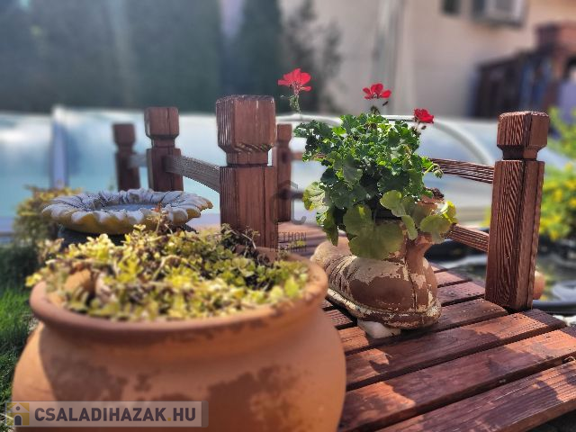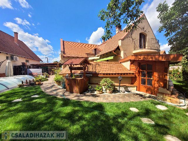 Élhető, tágas terek és kényelmi szempontokból is átgondolt kivitelezés jellemzi az egész ingatlant. Leendő tulajdonosa az év bármely szakaszában kikapcsolódhat anélkül, hogy kitenné a lábát otthonából: a 712 nm-es kert igazán intim, varázslatos hangulatot áraszt, itt rendelkezésre áll jakuzzi (5 személyes), fedett medence (6*3 m-es és 1,5 m mély+hangulatvilágítás), hatalmas terasz (44,06 nm), melyen élvezhetjük a nyári napsütést, vagy kiülve akár elfogyaszthatjuk reggelinket madárcsicsergés kíséretében. Borongósabb napokon szauna, szolárium és a nappaliban elhelyezett kandalló tüze segíthet kizökkenni a szürke hétköznapokból.