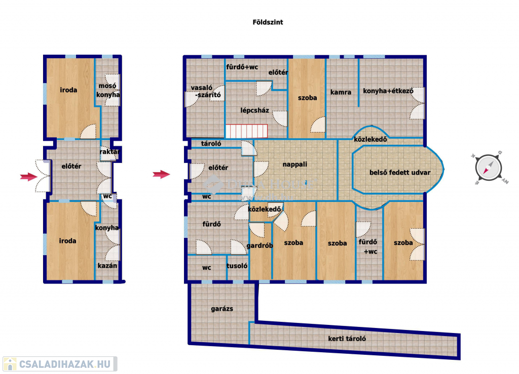 Eladásra kínálok egy közel 900 nm-es egyedi tervezésű családi házat Szombathely kedvelt lakóövezetében. Gyönyörűen rendezett, extrákkal felszerelt udvarral, fedett 2 autó beállására alkalmas garázzsal. A ház 2 szintes, első emeletén két, 77 nm-es külön lakrész található. Különlegessége,hogy a ház előtt külön épületben fogadhatók a vendégek, jelenleg irodaként funkcionál.