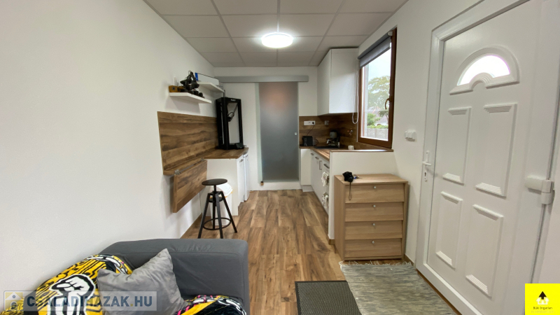 Ez az egység 12 x 2,4 méteres, kiváló állapotú, teljesen hőszigetelt lakókonténer, amely nappali-konyha, hálószoba és fürdőszoba funkciókat foglal magába. Korszerű klímával fűthető és hűthető, 3 fázisú áramellátással rendelkezik, külön betáplálás van napelemhez, így akár szigetelemű napelemrendszerről is működtethető. A napelem telepítéshez a szolgáltató által előírt 3 X 16 Amper rendelkezésre áll, amely az új kiépítés műszaki paramétereinek megfelelően 3x32 Amperig átalakítás nélkül bővíthető. Ideális akár állandó lakhatásra, akár irodának.