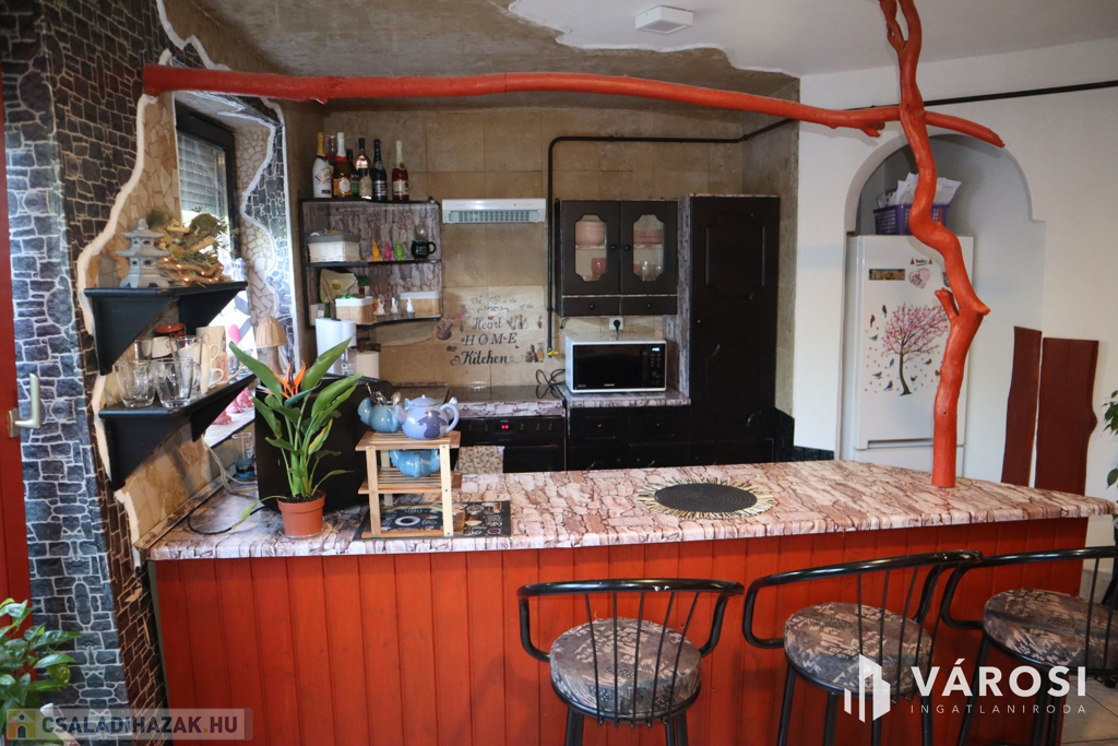 Az ingatlanba lépéskor egy nagy előtér várja Önt/Önöket, amiből nyilik a szépen kialakitott konyha és étkező, illetve itt egy WC is található.