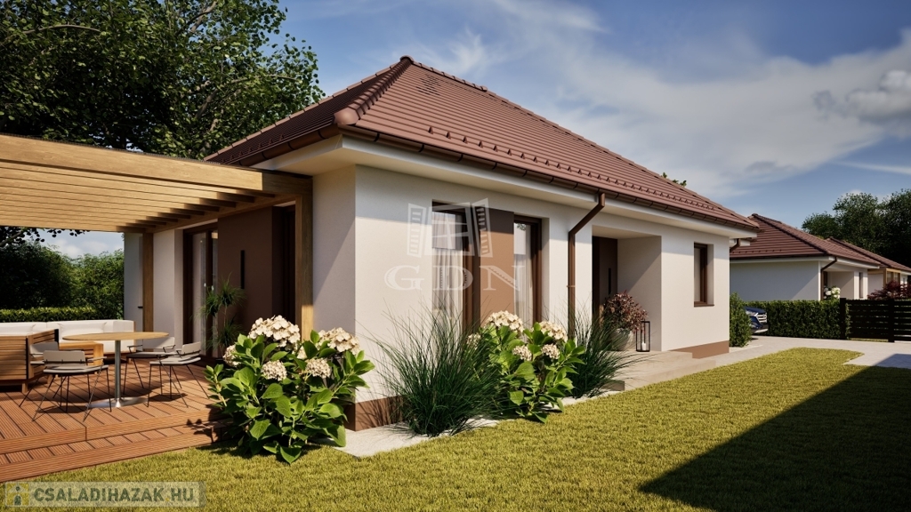 A Wienerberger Porotherm téglából épülő házak magas műszaki tartalommal épülnek. Tetőszerkezete C22 I. osztályú , rovar, gomba és lángmentesítővel kezelt faanyaggal kerül kivitelezésre. Fedése Terran vagy Bramac cseréppel történik, az összes rendszer tartozékkal, előírások szerint helyenként hófogóval. Bádogos szerkezetek, a külső vízelvezetések ereszcsatornái, a lefolyócsövei és az egyéb bádogos szerkezetek 0.6 mm vastag acéllemezből készülnek. Homlokzati falfelületek 15 cm vastag EPS hőszigetelő rendszert, a lábazatok 10 cm vastag XPS lábazati hőszigetelő rendszert kapnak. A padozatokba 10 cm vastag teherbíró EPS hab hőszigetelés kerül. A födém hőszigetelése 25 cm vastag ásványgyapot szigetelőanyaggal történik. Külső nyílászárói műanyag, három rétegű üvegezéssel szerelt, fokozottan hang-és hőszigeteltek. Fűtése, a háztartási helyiségben elhelyezett 10Kw teljesítményű Gree Versati 3 hőszivattyúval történik, padlófűtéses hőleadással szabályozható termosztáttal. A hőszivattyú biztosítja a melegvizet is, egy 200 literes hőtárolós víztartállyal. Nappaliában 3.5 Kw teljesítményű hűtő-fűtő klíma kerül.Az ingatlanban riasztó, kaputelefon, előkészítés történik. Beltéri ajtók, hideg-meleg burkolatok, szaniterek, csaptelepek választhatók.. Ha bővebb tájékoztatást szeretne, kérem keressen. Vegye igénybe irodánk szolgáltatásait. Hitelügyintézésben is segítünk.