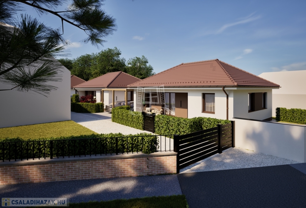 A Wienerberger Porotherm téglából épülő házak magas műszaki tartalommal épülnek. Tetőszerkezete C22 I. osztályú , rovar, gomba és lángmentesítővel kezelt faanyaggal kerül kivitelezésre. Fedése Terran vagy Bramac cseréppel történik, az összes rendszer tartozékkal, előírások szerint helyenként hófogóval. Bádogos szerkezetek, a külső vízelvezetések ereszcsatornái, a lefolyócsövei és az egyéb bádogos szerkezetek 0.6 mm vastag acéllemezből készülnek. Homlokzati falfelületek 15 cm vastag EPS hőszigetelő rendszert, a lábazatok 10 cm vastag XPS lábazati hőszigetelő rendszert kapnak. A padozatokba 10 cm vastag teherbíró EPS hab hőszigetelés kerül. A födém hőszigetelése 25 cm vastag ásványgyapot szigetelőanyaggal történik. Külső nyílászárói műanyag, három rétegű üvegezéssel szerelt, fokozottan hang-és hőszigeteltek. Fűtése, a háztartási helyiségben elhelyezett 10Kw teljesítményű Gree Versati 3 hőszivattyúval történik, padlófűtéses hőleadással szabályozható termosztáttal. A hőszivattyú biztosítja a melegvizet is, egy 200 literes hőtárolós víztartállyal. Nappaliában 3.5 Kw teljesítményű hűtő- fűtő klíma kerül. Az ingatlanban riasztó, kaputelefon előkészítés történik. Beltéri ajtók, hideg-meleg burkolatok, szaniterek, csaptelepek választhatók.. Ha bővebb tájékoztatást szeretne, kérem keressen. Vegye igénybe irodánk szolgáltatásait. Hitelügyintézésben is segítünk.