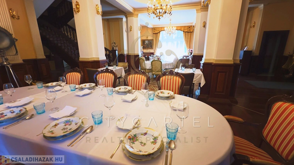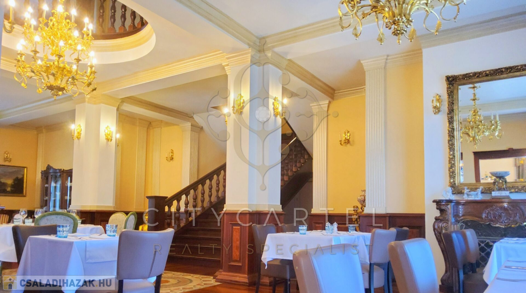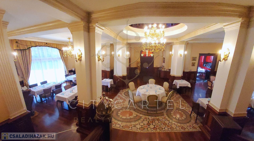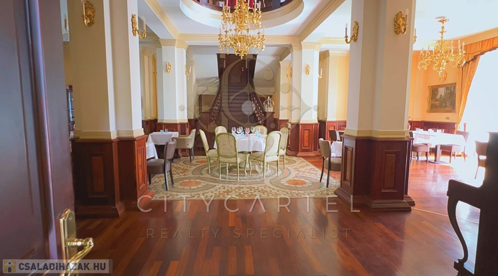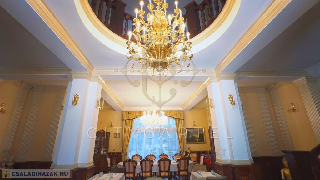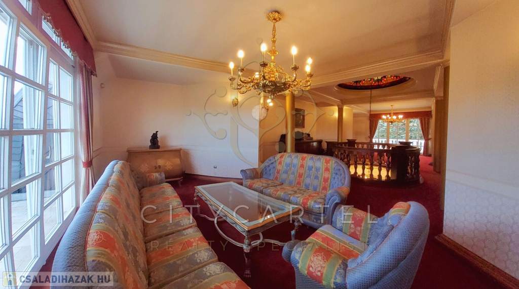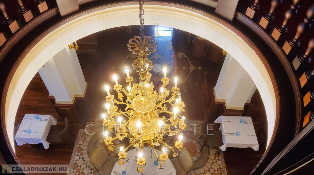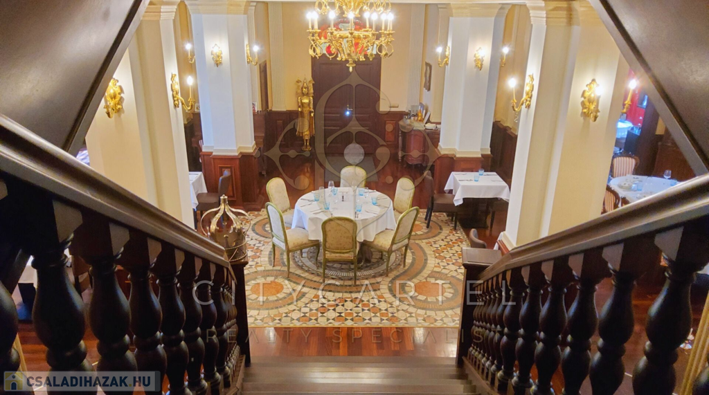 A néhány lépcsőn megközelíthető, impozáns előteraszról nyíló főbejáraton belépve tágas, 122 nm-es nappali fogadja az érkezőket, amely tökéletes választás lehet nagyobb fogadások és rendezvények elegáns helyszínének.