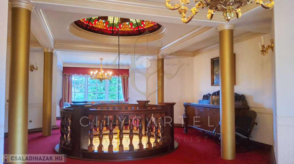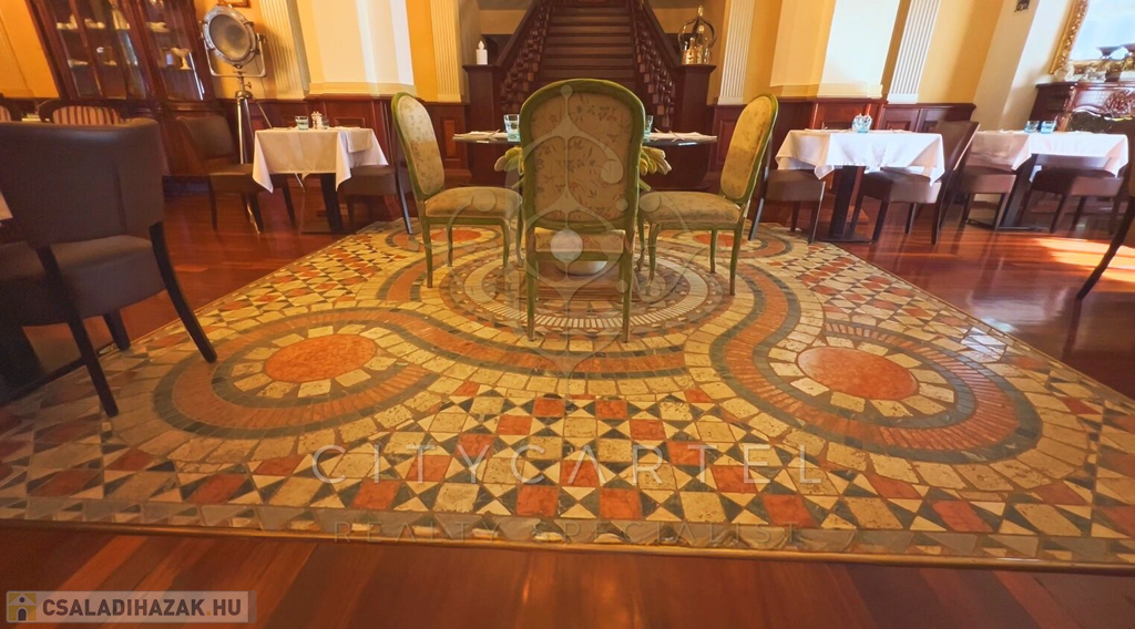 A nappali központi eleme, igazi különlegesség az épületen belül a csaknem 30 nm-es, 3500 lapból rakott, egyedi római kőburkolat, amely a nappali padlózatát díszíti - valamint a 120 nm-es galéria ólomüveg kupolája.