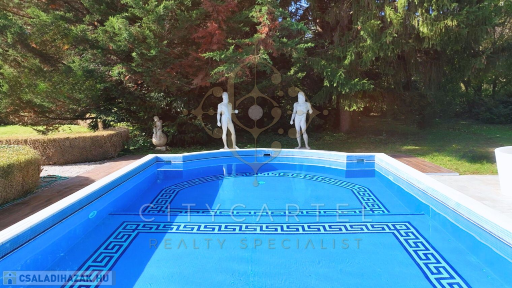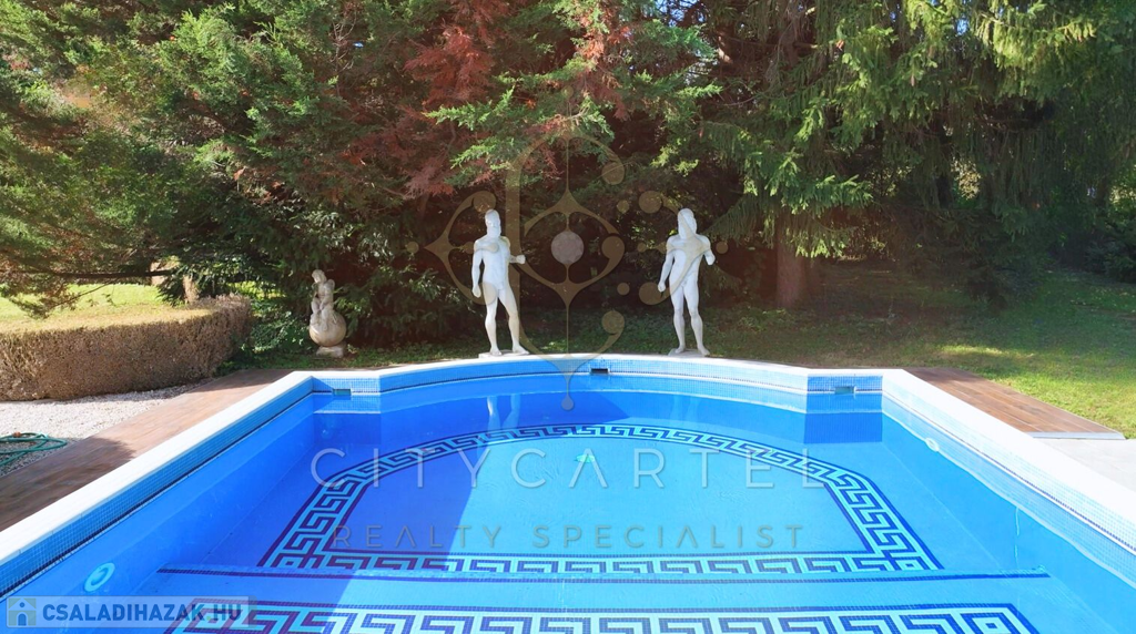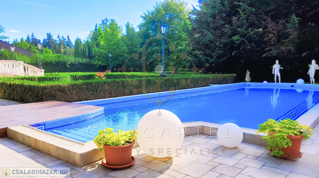 A kert ékessége a 19,5x6 méteres úszómedence, valamint a kiváló minőségű jacuzzi, amelyek tökéletes helyszínt biztosítanak nagy családi ünnepségekhez, baráti összejövetelekhez és bármilyen társasági eseményhez.