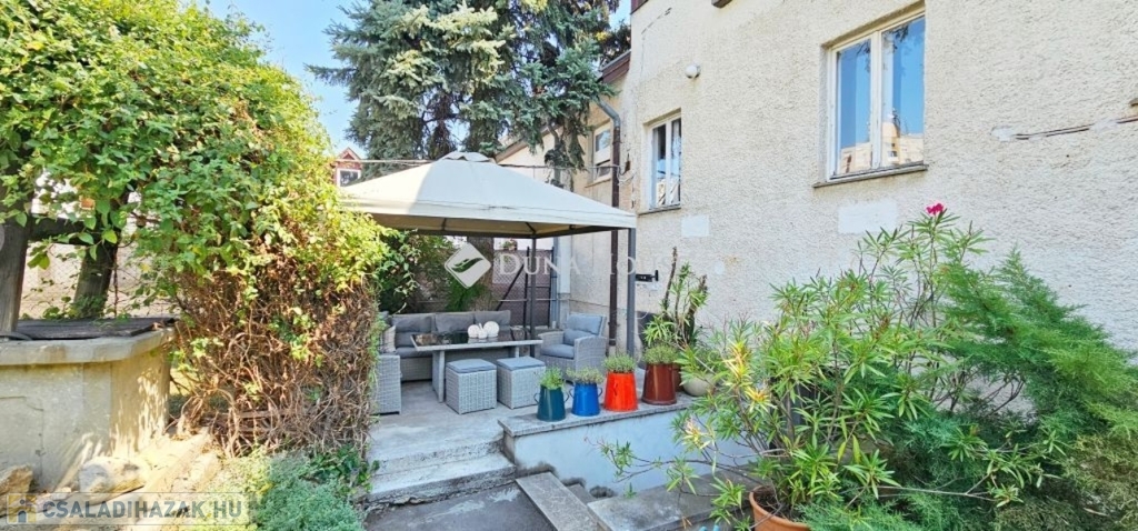 Az udvar: Nem túl nagy, könnyen rendben tartható. Kíváncsi szemek elől gondosan elzárt. Hangulatos kiülővel rendelkezik, kiépített villannyal, kerti mozizáshoz, medence beüzemeléséhez ideális.