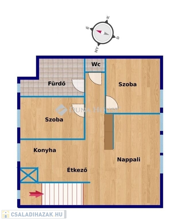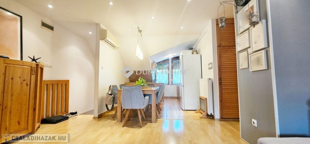 Jelenlegi kialakítás szerint az emeleten konyha-étkező-nappali+ 2 hálszoba, fürdő, wc kapott helyet. (Klímával felszerelve)