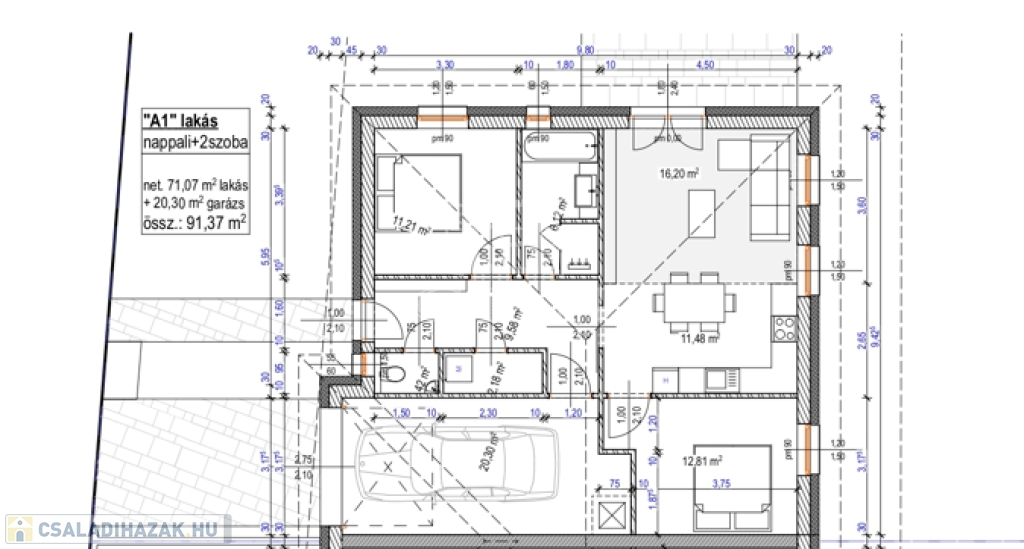 10 cm-es kerámia válaszfalat, a szerelvény a 7,5 cm-es szerkezetben kerül kialakításra. A födémet a tetőszerkezet elemei adják, amihez gipszkarton álmennyezet kerül rögzítésre, kialakítva egy 20 m2-es pakolásra alkalmas területet, amit padlásfeljáró segítségével lehet elérni. A teherhordó falak és a hanggátló fal is gipszkartonlap borítást kap, így az egész belső tér egy homogén, rendkívül pontos felületet fog alkotni.