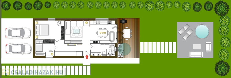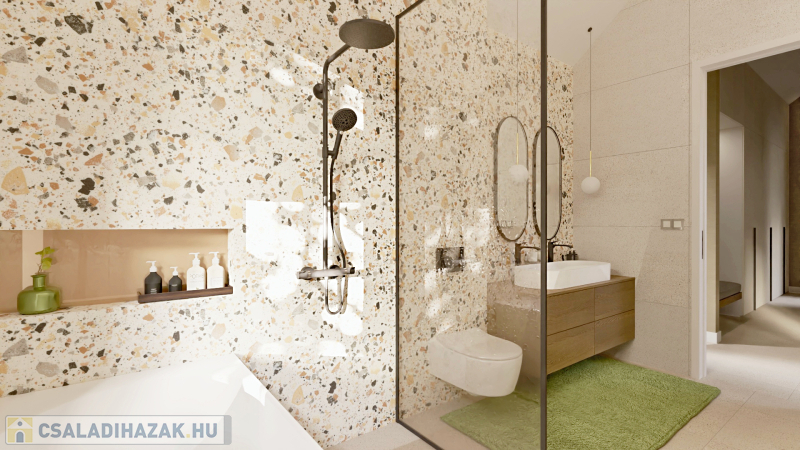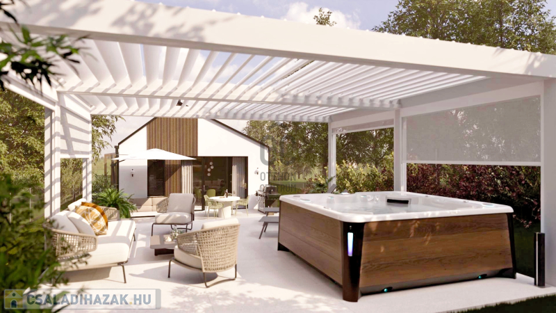 Ez azt jelenti, hogy 3D-ben megépítésre került a ház és a wellness rész, így valós, milliméterpontos 3D-s berendezett, modellek állnak rendelkezésre a megtapasztaláshoz. Így még az esetleges módosításokhoz, legyenek azok színek, anyagok, ajtók, ablakok vagy akár az alaprajzot érintő változtatások, lehetőség van!