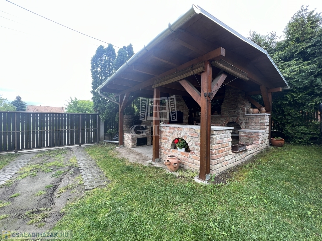 Az ingatlanhoz tartozik egy nagy terasz is, ahol kényelmesen pihenhetünk vagy barátainkkal találkozhatunk a szabadban. A kertben pedig egy kerti sütőtető található, amely ideális helyszín a grillpartikhoz és családi összejövetelekhez.