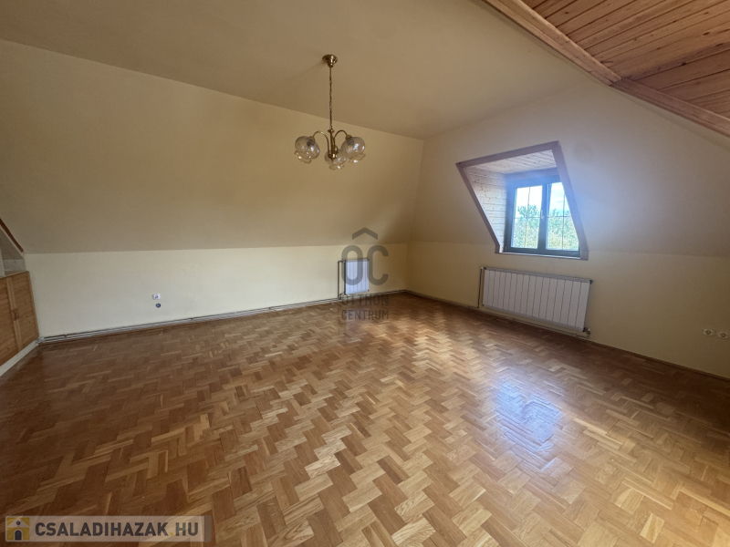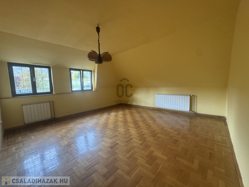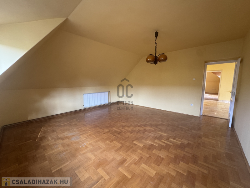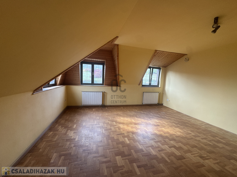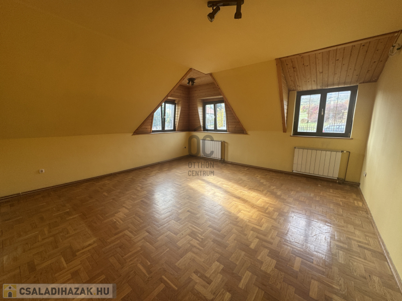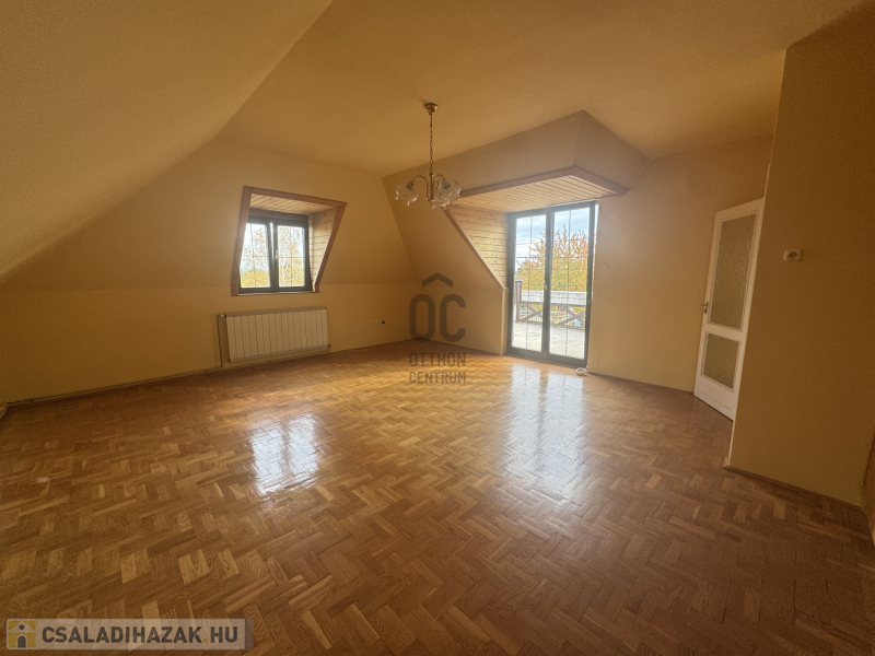 Emeleti szinten 3 db óriási hálószoba, gardróbszoba, fürdőszoba és egy 17 nm nagyságú panoráma terasz várja új tulajdonosát.