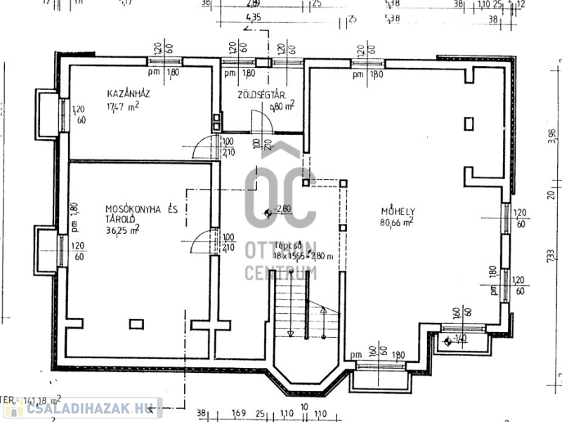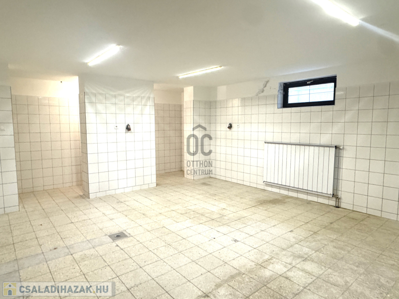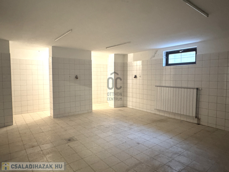 Az alagsori rész 140 nm nagyságú 3 fő részből tevődik össze, külön bejárattal, 2 méter magasságig burkolattal ellátott, sőt! ipari áram helységenként több ponton is rendelkezésre áll.