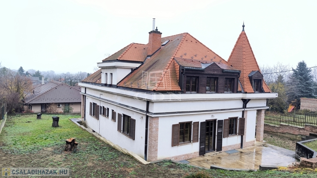 ✨ Tahitótfalu egyik legbékésebb utcájában kínálkozik ez a különleges, kastély jellegű otthon, amely összesen nettó 381,78 m² lakótérrel rendelkezik (pinceszint nettó 141,18 m², földszint nettó 135,92 m² – bruttó 169,37 m², tetőtér nettó 104,68 m²).