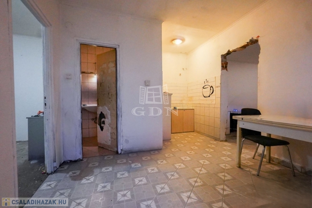 Bár anno szebb napokat is látott, most teljeskörűen felújítandó állapotú. Pár ablak már műanyag thermoüveges, és a kerámiaburkolat is újszerű.