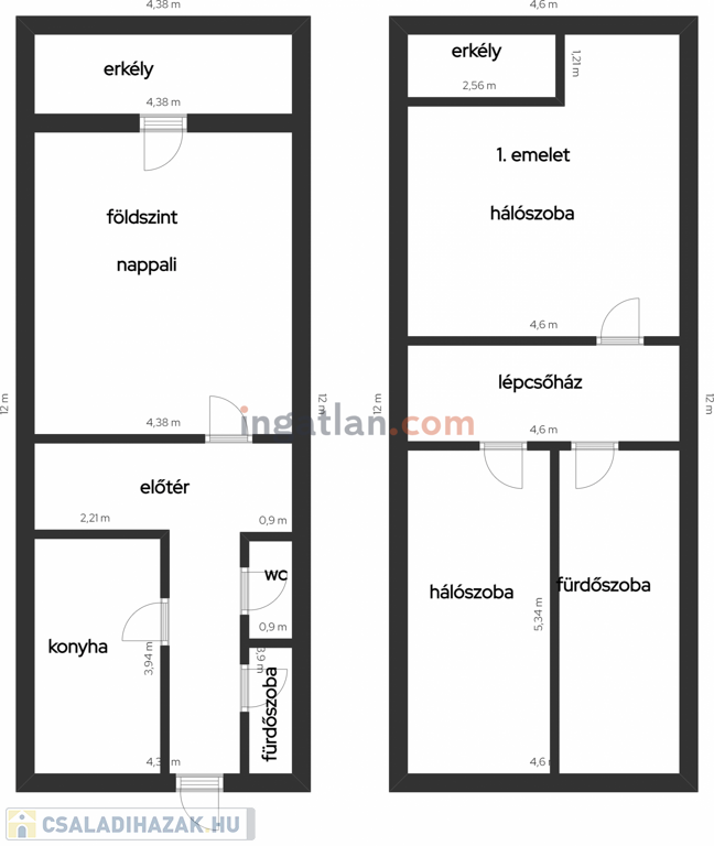 Midkettő szinten fedett terasz is található, az alsó szinten nagyobb, a felső szinten kisebb.
