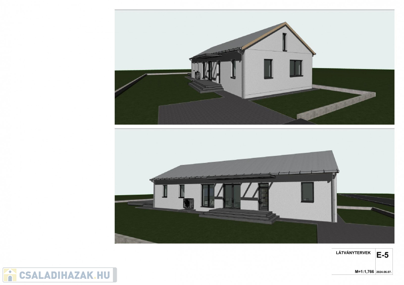 Műszaki tartalomról: 30-as PTH tégla+15cm dryvit szigetelés, műanyag nyílászárók, hőszivattyú, inverteres klíma, térkövezett kocsibeálló, stb.