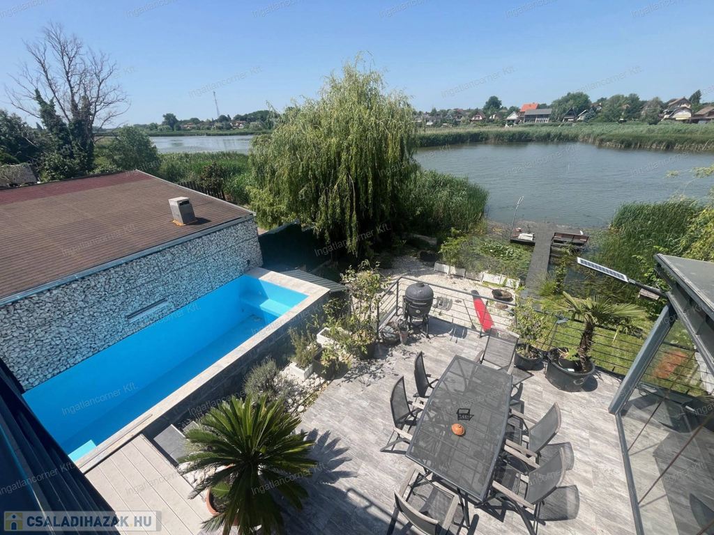 Kivételes lehetőség a természet és kényelem szerelmeseinek: 626 m²-es telek + 100 m² saját dunaparti rész, saját stéggel! Az ingatlan 2021-ben épült, 290 m²-es lakótérrel, igényesen kialakítva, modern és energiatakarékos megoldásokkal.