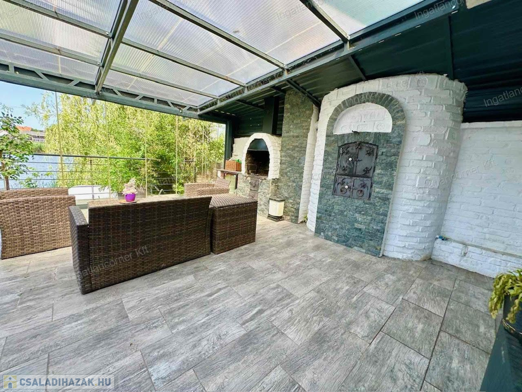 •45 m²-es fedett terasz kemencével, grillezővel, padlófűtéssel
