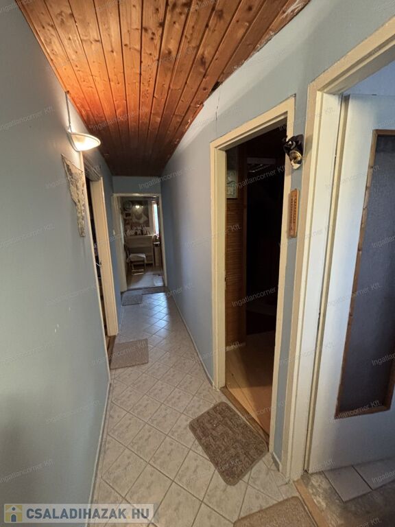 Eladó Taksonyban, a Duna parton egy 398 m2-es telken lévő, a 90-es években épült, 80 m2-es, belső kétszintes, nappali + 4 hálószobás, garázzsal rendelkező (+35 m2), családi ház!
